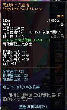 无影剑无论是给鬼剑士哪个职业佩戴,效果都是非常可观,毕竟30/的附加伤害在当时确实不可忽视。